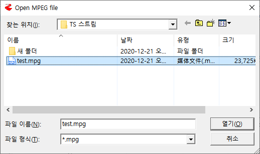- Open 버튼을 눌러 전송할 콘텐츠를 선택합니다. (콘텐츠는 MPEG_TS, MPG 파일만 지원)