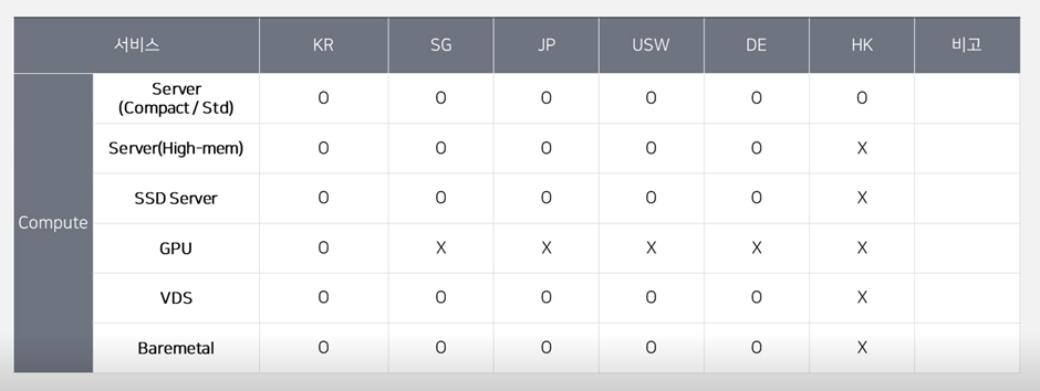- (리전 의존 상품) 로드밸런서, 오브젝트 스토리지 등의 네트워크/스토리지